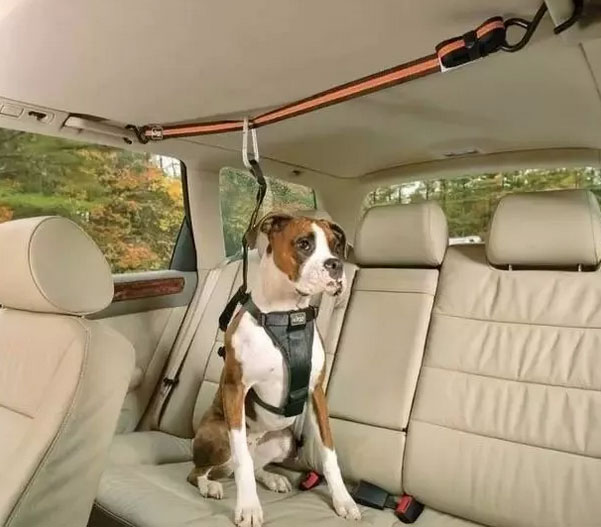 9. 車載妙招 狗狗總愛從后座竄到前面咋辦? 看圖!將繩子固定在車后座的安全扶手上,再用卡扣固定住狗狗,既不影響狗狗在后座活動(dòng),又能防止它竄到前面去。