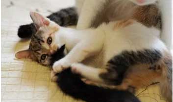 當(dāng)母貓懷孕之后,有時會舔舐自己的乳頭,導(dǎo)致周圍被毛脫落以方便哺乳。但也有時是因為乳腺發(fā)炎而發(fā)癢,導(dǎo)致母貓不停舔舐,結(jié)果讓毛都掉了。所以當(dāng)看見貓咪舔舐乳頭時,一定要先檢查有沒有病變。